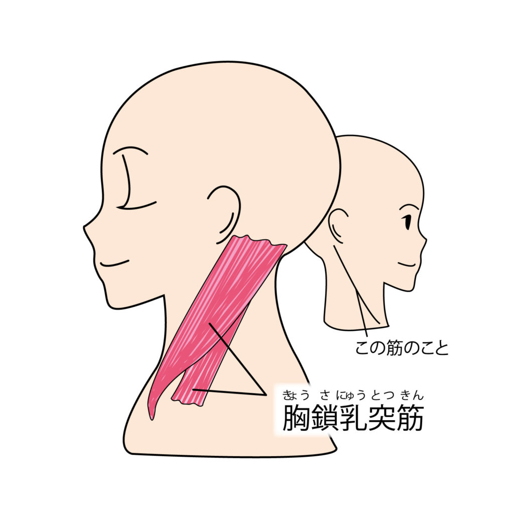 ストレートネックの状態では、首の前側にある胸鎖乳突筋という筋肉が凝り固まってしまいます。