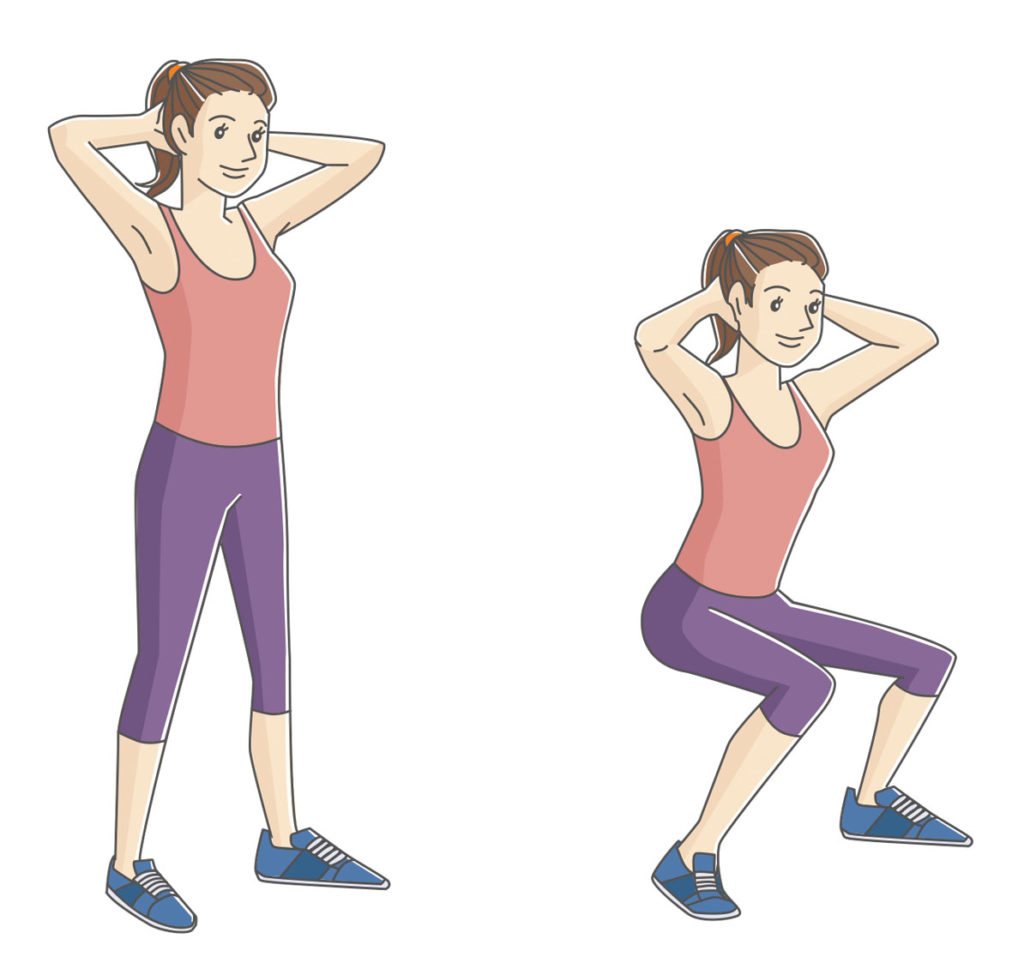 2. 息を吐きながら、ゆっくりと膝の高さまでお尻を落とす。