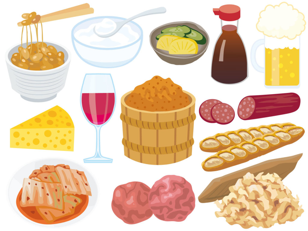 発酵食品には、ヨーグルト、納豆、みそ、キムチ、漬け物、醤油、お酢など様々なものがあります。食品により存在する菌が異なるので、いろいろな発酵食品を摂るように意識しましょう。